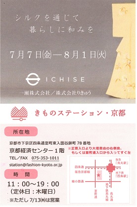 さて、今年も7月7日㈮から8月1日㈫の間、四条烏丸の京都経済センター1階のきものステーション・京都にて、夏冬小紋・名古屋帯・塵除けコート・シルクショール等を展示販売致します。