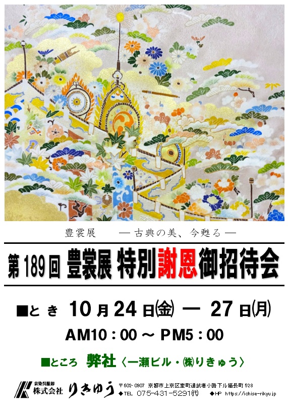 この度10月24日(金)~10月27日(月)の期間、弊社ビルにて第189回豊裳展・特別謝恩御招待会を開催いたします。